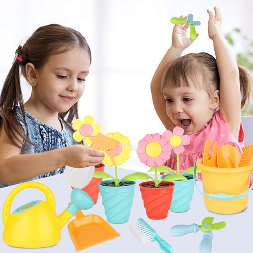 - Garten Spielzeug Kinder: Sie erhalten Eimer* 1, Spruhdose* 1, Giesskanne* 1, Schere* 2, Burste* 1, Kehrschaufel*1, Rechen* 1, Schaufel* 1, Gabeln* 1, Blume* 4, Blumentopf* 4, Aufklebern* 6. Kinder Gartengerate Spielzeug Eine Vielzahl von Zubehor mit niedlichen Aufklebern geben Ihrem Kind mehr Auswahl beim Spielen.